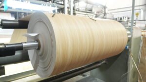 3.Printing:We apply complex designs with our gravure printing presses which can run up to 6 colors. Whether it’s a calm wood texture or a prominent stone nucleus, the high resolution printing technology records each little detail.