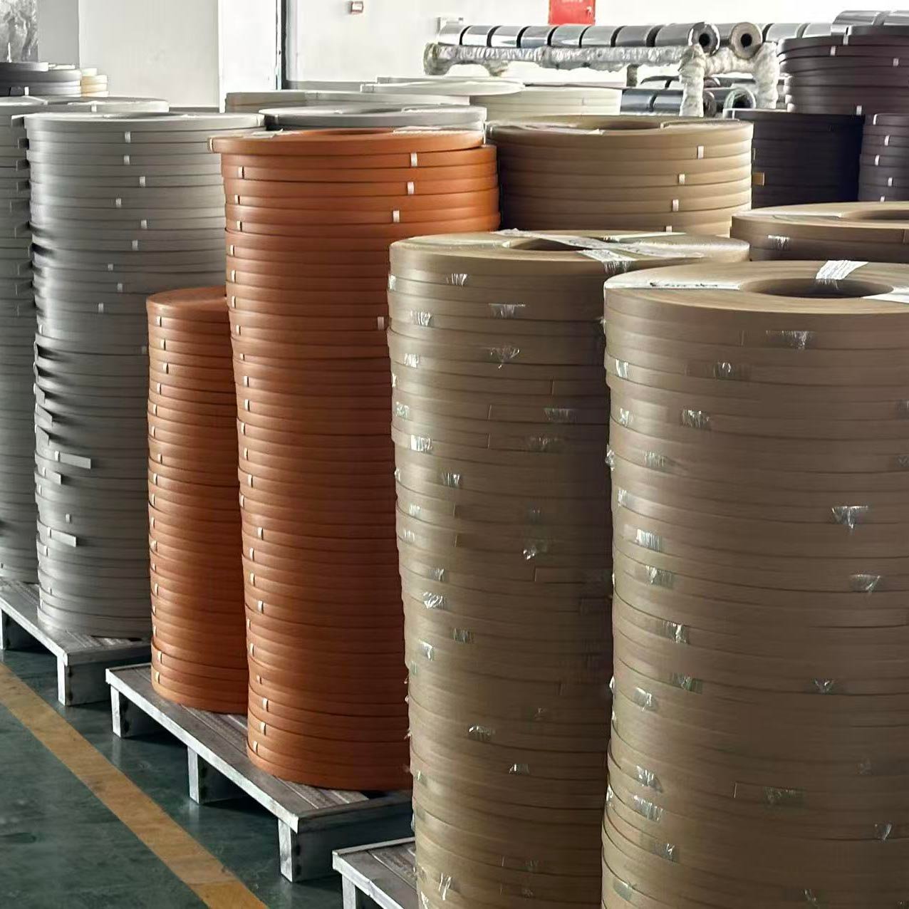 This high-performance edge banding strip is specially designed for panel furniture, cabinets, wardrobes and office furniture. It can perfectly wrap the cutting edges of panels, protecting the base material and giving the furniture a seamless aesthetic effect. The product is made of high-quality PVC/ABS raw materials, which is environmentally friendly, odorless, and in line with international standards. The production workshop has no odor and is suitable for aldehyde-free projects. The back is treated with a special rough embossing and hot-melt adhesive is used to bond it firmly to particleboard, density board and other boards, making it difficult to peel off the edges; an anti-scratch layer is added to the surface, which is wear-resistant and scratch-resistant. It can withstand scratches from hard objects such as keys in daily use. At the same time, the dense material is effectively moisture-proof and waterproof, preventing moisture penetration, preventing the edges of the board from swelling and molding, and significantly extending the life of the furniture. The edge banding strip has good flexibility and can smoothly pass through the fully automatic straight or curved edge banding machine. Even R-shaped or special-shaped edges can still fit tightly. In terms of technical specifications, the thickness is optional from 0.4mm to 22mm, the width is 10-100mm (regular 19/22/40mm), the length can be provided in 100m/200m rolls, and the surface treatment covers high gloss, matte, skin texture, wood grain, and solid color. Applicable scenarios include customized wardrobes, cabinets, bookcases, office desks, conference tables, display cabinets, indoor door covers and window cover decorative lines. It is especially suitable for places with high environmental protection requirements such as kindergartens and hospitals. Processing suggestions: The hot melt glue temperature of the automatic edge banding machine is controlled at 180-220°C; manual operation can be used with L-shaped glue or glue-free products. After cutting, use a trimming knife or chamfering machine to obtain rounded corners. Supports customization of exclusive colors, wood grains and even logo printing on demand (minimum order quantity required). Whether it is purchased in bulk from a furniture factory or used in a customized furniture store, this edge banding strip can help you improve the durability and beauty of the edge details of your product with stable quality and rich choices.
